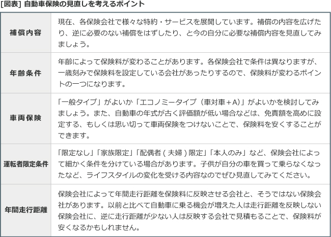 年間数万円も支払う自動車保険。なんとなく更新してしまうのではなく、ポイントを押さえて保険を見直すことで、思いがけず保険料が安くなることがあります。